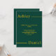 Dieses elegante, grüne und goldene Hochzeitsangebot eignet sich perfekt für eine moderne Hochzeit, das schlichte Design zeichnet sich durch elegante goldene Kalligraphie auf grünem Hintergrund aus.