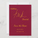 Diese elegante Bordeaux- und Goldhochzeit bewahrt das Datum für eine moderne Hochzeit und bietet elegante Goldkalligraphie auf bordeauxrotem Hintergrund.
