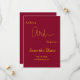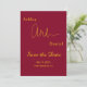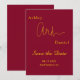 Diese elegante Bordeaux- und Goldhochzeit bewahrt das Datum für eine moderne Hochzeit und bietet elegante Goldkalligraphie auf bordeauxrotem Hintergrund.