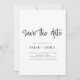 Eine schlichte, moderne Save the Date Karte. Personalisieren Sie dieses minimalistisch schwarz-weiß Design, um Ihre persönlichen Daten und Nachricht zu haben.