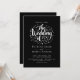 Diese elegante Schwarz-Weiß-Einladung eignet sich ideal für eine moderne Hochzeit. Das schlichte Design zeichnet sich durch elegante weiße Kalligraphie auf schwarzem Hintergrund aus. Die Einladungskarte enthält die Hochzeitsdetails auf der Rückseite, anstatt für eine separate Kapselkarte zu bezahlen.