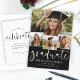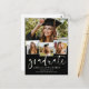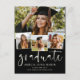 Eine moderne Abschluss-Einladung mit dem Wort "Graduierte" auf der Vorderseite in stilvoller Schrift-Kalligrafie, plus 4 Ihrer Lieblings-Senior-Fotos. Fügen Sie Ihre persönlichen Feierlichkeiten hinzu. Das ist die schlichte schwarze und Elfenbeinversion.