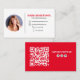 Dieses Design verfügt über eine einfache Visitenkartenvorlage mit einem modernen, beruflichen, minimalistischen Look, minimalen, eleganten Social Media Icons, schlicht scannbaren QR-Code, ein schicke Foto-Kontaktbild, ein E-Mail-Website-Icon, ein schlichtes Schwarzweiß, elegant minimalistisch Design Stilelemente, Foto oder Grafik, zeitgenössisch sauberen, modernen Stil, fügen Sie Ihr eigenes Logo oder Foto Rot