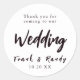 Modernes, einfaches und minimalistisches Dankeschön für Ihren Besuch auf unserem Hochzeitsaufkleber, auf anpassbarem weißem Hintergrund mit schwarzer Typografie. Enthält die Namen und das Datum der Hochzeit. Herzlichen Glückwunsch zu Ihrer Hochzeit!