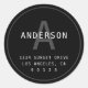 Moderne einfache Monogramm-Adresse | Schwarz-Weiß Runder Aufkleber