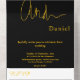 Dieses elegante Schwarz-Gold-Hochzeitsangebot eignet sich perfekt für eine moderne Hochzeit, das schlichte Design zeichnet sich durch elegante goldene Kalligraphie auf schwarzem Hintergrund aus.