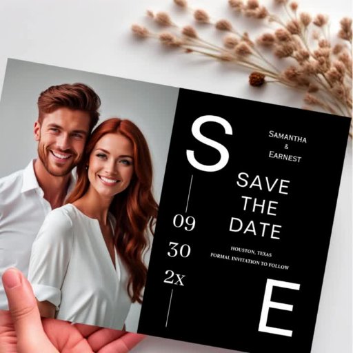 Diese moderne Einladung zur Hochzeit von Fotos mit schwarzem Hintergrund mit moderner weißer Kalligraphie und Initialen, Monogramm. Im Hintergrund können Sie diese trendige Einladung mit Ihrem eigenen Foto personalisieren.