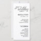 Elegantes und minimales Hochzeitsprogramm mit modernem Skripttext. Passen Sie dieses Programm an, indem Sie Informationen für Ihre Hochzeitsfeier hinzufügen. Ideal für jede Jahreszeit.