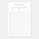 Moderne schwarz-weiße Post es notiert mit einem einfachen Layout mit " Lebensmittelliste " in einer eleganten und schicken Kalligraphie zusammen mit Ihrem Namen und einer Checkliste.
