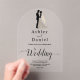 Diese elegante, schwarz-weiße Akrylarsch-Hochzeitseinladung eignet sich perfekt für eine moderne Hochzeit. Das einfache Design zeichnet sich durch elegante schwarze Kalligraphie und eine Braut- und Bräutigramme-Abbildung auf einem klaren, transparenten Hintergrund aus.