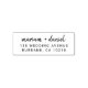 Moderne, minimalistische Hochzeitsfeier-Rücksendeadresse-Selbstmalerei-Briefmarke, in einem schlichten und eleganten Design, mit dem Namen der Braut und der Jungzunge in stilvollen handgeschriebenen Kalligraphieskripttypografie gepaart mit einem anpassbaren Mailadresse-Text in einem trendigen Sans Serif-Schriftart für ein elegantes, raffiniertes Ambiente in Schwarz und Weiß. Eine Hochzeit planen oder nach Ideen suchen? Dieses Design ist perfekt für ein frisch verlobtes Paar, das eine wunderschöne und einzigartige Briefumschlag-Briefmarke für ihre Einladungen, UAWG, Dankeschön-Karten und andere Schreibwaren will, um ihren Gästen, die ihre Hochzeitsdekoration und das Thema ihrer Zeremonie und Empfang. Passen Sie diese Hochzeit einladen, indem Sie Ihre Hochzeitsdetails hinzufügen. Es ist eine schöne Wahl für feierliche Hochzeiten zu jeder Jahreszeit. In unserer Sammlung von Briefmarke zur Hochzeit von Rücksendeadressen finden Sie verschiedene Formulierungen und Layouts.