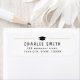 Modernes Typografie-Design mit Graduierungsmütze in Schwarz/Weiß, großartiges personalisiertes Rücksendelabel für Graduierungsparty.