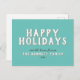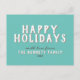 Moderne einfache weiße Typografie Happy Holidays Postcard. Das Design hat einen türkisfarbenen Hintergrund und moderne, weiße und graue Typografie - Sie können den gesamten Text anpassen.