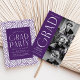 Trendy Graduation Party lädt mit den drei Fotos des Absolventen rechts neben dem Design in einem vertikalen Layout. "Grad" wird in weißem, modernem Deko mit lila Hintergrund dargestellt. Personalisieren Sie die moderne Foto Graduation Party einladen, indem Sie den Namen des Absolventen, Abschluss Jahr und Schulname. Das Design kehrt sich um, um die Details Ihrer Graduierungsparty mit einem lila und weißen geometrischen wirbelnden Hintergrund anzuzeigen. Perfekt für Uni-Abschluss und Gymnasiasten!