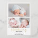 Moderne Einführung von Schwarz-weißen 3 Fotos Baby-Geburtsankündigung , mit einem coolen, eleganten, handgeschriebenen Pinselskript und bearbeitbaren schwarz-weißen Polka-Punkten auf der Rückseite und realer Goldfolie.