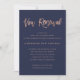 Diese elegante, stilvolle Hochzeitsversprechen-Erneuerungseinladung kennzeichnet modernes, Imitat-Rosen-Goldskript auf einem blauen Mitternachtshintergrund.