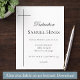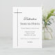 Laden Sie Freunde und Familie ein, die Taufe Ihres Kindes in der Kirche mit diesen minimalistischen schwarz-weißen Einladungen zu feiern. Das moderne Design zeigt ein langes, dünnes Kreuz mit dem Namen Ihres Sohnes/Tochter - begleitet von den Details der Zeremonie und Feier. Herunterladbares Druckexemplar verfügbar, Optionen für soziale Medien.