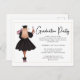 Moderne Lässige Script Graduation Party Invitation - Moderne Skripttypografie mit minimalem Design. Ein schöner Absolvent hält ihr Diplom und einen Strauß rosa Rosen. Die Karte ist mit einem dünnen goldenen Rand versehen. Graduation Party Einladung ist Teil einer Sammlung.