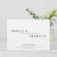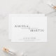 Diese modernen, minimalistischen Einladungen zur Hochzeit von 7" x 5" bieten Platzhalter für das Ehepaar mit Vornamen, Datum und Uhrzeit, Lage in schwarzer Schrift auf neutralem Hintergrund. Durch die Auswahl im Standby-Modus wird die Hintergrundfarbe bestimmt.