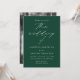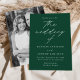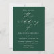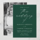 Minimalistische, moderne Hochzeitseinladung mit Ihren Hochzeitsdetails in einer schlichten, weißen Schrift mit "der Hochzeit von" in einem eleganten Kalligrafieschrift mit grünem Hintergrund. Die Einladung kehrt sich um, um Ihr Foto der vertikalen Verlobung anzuzeigen. Entworfen, um mit unserer Hochzeitskollektion "Moderne Elegance" zu koordinieren.