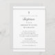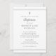Die klassisch elegante Taufeinladung ist eine moderne, saubere Einladung mit pastellgrauen Streifen und einem minimalen Kreuz mit bearbeitbarem grauem Text.