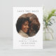 Für die Ehepaare, die heiraten und eine einfache, aber zeitgenössische und stilvolle Hochzeit gewollt, speichern Sie das Datum. Diese Save the Date Karte ermöglicht die Aufnahme eines Fotos, die Namen der Braut und Bräutigam und das alles wichtige Hochzeitstag. Lass Freunde und Familie wissen, in ihrem Kalender Save the Date, mit einer einfachen, eleganten und minimalistischen Stil Hochzeit speichern Sie das Datum. Das Foto des Ehepaares wird in einem unregelmäßigen, trendigen Kreis erscheinen, was dem Design ein zeitgenössischeres Ambiente verleiht.