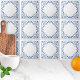 Diese moderne, elegante, blau-weiße Keramik mit freiem Raum in der Mitte macht es einfach, ein stilvolles Muster für einen Küchenrücken zu schaffen oder eine Badezimmerwand zu dekorieren. Es kann auch mit anderen ähnlichen Fliesen aus der Sammlung kombiniert werden, um ein einzigartiges Wanddesign zu schaffen.