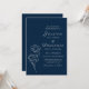 Erleben Sie Ihre Hochzeit mit dieser marineblauen und silbernen Einladung, mit eleganten Rose Blumenakzenten. Mit einer dunklen Marinestadt und eleganten silbernen Highlights strahlt dieses Design zeitlosen Charme aus und eignet sich perfekt für ein romantisches und elegantes Fest. Persönlich für eine einmalige Touch an Ihrem besonderen Tag.