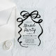 Feiern Sie Ihren Absolventen stilvoll mit dieser modernen eleganten Black Bow Akryllische Graduiertenparty-Einladung! Mit einem fett schwarzen Bogen entworfen, der die Details des Party auf einem durchsichtigen Acrylhintergrund anmutet, strahlt diese Einladung Raffinesse und zeitgenössischen Charme aus. Der stilvolle Schriftart mit schwarzer Schrift verleiht seiner modernen Anziehungskraft und eignet sich somit hervorragend für Uni-Abschluß- und Schulfeiern. Machen Sie Ihre Veranstaltung mit dieser schicken und trendigen Einladung unvergesslich!