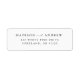 Elegante Hochzeitsstipps mit den Namen des Ehepaares, getrennt durch das Wort "und" in einem schwarzen Kalligraphieskript. Personalisieren Sie die modernen Rücksendeadressen-Aufkleber mit Ihrer Adresse unten. Die Labels eignen sich hervorragend für Hochzeiten, Brautpartys und andere Veranstaltungen.