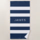 Moderne elegante blaue Streifen Muster Name Beach Handtuch.