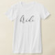 Moderner "Braut"-T - Shirt zeichnet sich durch ein minimalistisches Design und einen eleganten Schriftart aus. Der Text kann nicht geändert werden, aber die Farben können im Modus "Design bearbeiten" geändert werden. Karo passende Entwürfe für die Erholung des Brautparty in der Kollektion "Brautparty Geschenke" und passende Hochzeitsartikel in der Kollektion "Modernes Elegant".