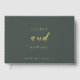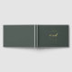 Das individuell gestaltete, dunkelweiss grüne und goldene Gästebuch mit moderner, eleganter Handkalligraphie mit dem Namen des personalisierten Ehepaares, dem Hochzeitstermin und der Lage.