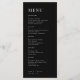 Moody schwarz trendy minimalistische Typografie personalisierte Hochzeitsmenu Karte.