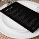 Moderne, elegante, einfache Hochzeit in Schwarz-We Menükarte