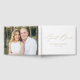 Elegantes Hochzeitsguestbook mit "Gästebuch" in einem modernen goldenen Kalligraphieskript auf weißem Hintergrund. Personalisieren Sie die Front des einfachen Hochzeitsgast-Buches mit Ihren Namen und Hochzeitsdatum. Auf der Rückseite des Gästebuches wird das Foto der horizontalen Verlobung angezeigt. Fügen Sie Ihren verheirateten Namen und Ihr Hochzeitstermin dem Rückgrat des Gästebuches hinzu.