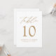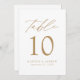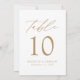 Trendy, minimalistische Hochzeitskarten mit moderner Goldschrift mit "Table" in moderner Kalligraphie-Schrift. Das Design weist einen weißen Hintergrund oder eine Farbe Ihrer Wahl auf. Das Design wiederholt sich auf der Rückseite. Um die Tischkarten zu bestellen: Fügen Sie Ihren Namen, Ihr Hochzeitstag und Ihre Tischnummer hinzu. Fügen Sie jede Nummer einzeln in Ihren Warenkorb und Karo, wenn Sie fertig sind.