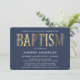 Moderne Elegante Taufe mit der ''Taufe'' in Goldfolie, die auf einem tiefmarineblauen Hintergrund gedruckt wird, und mit goldgelber Folie, die auf der Rückseite kreuz gezeichnet wird. Diese anpassbare moderne Taufeinladung, perfekt für Jungen Taufe.
