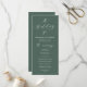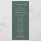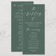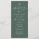 Feiern Sie Ihren besonderen Tag mit diesem eleganten Hochzeitsprogramm mit der "Hochzeit von" in schöner weißer Kalligrafie vor einem dunkelgrünen Hintergrund. Passen Sie es mit Ihren Namen, Ihrem Hochzeitstag und Zeremonie Details in fett weißer Schrift für eine persönliche Touch an. Die Rückseite bietet Platz, um die Namen Ihres Brautparty zu präsentieren, was es zu einem unvergesslichen Sake für alle Beteiligten macht. Dieses Hochzeitsprogramm verbindet moderne Eleganz mit schlichter Eleganz und ist somit die perfekte Ergänzung zu formellen und lässigen Hochzeiten zu jeder Jahreszeit. Sein zeitloses Design wird jedes Hochzeitsthema wunderbar ergänzen.