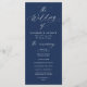 Dieses elegante Hochzeitsprogramm enthält den Satz "Die Hochzeit von" in graziösem weißem Kalligraphie-Set vor einem raffinierten marinierten Hintergrund. Personalisieren Sie es mit Ihren Namen, Hochzeitstag und Zeremoniell Details in fett weißer Schrift, wodurch eine beeindruckende und organisierte Präsentation für Ihre Gäste. Das Programm kehrt zurück, um die Namen Ihres Brautparty anzuzeigen, und fügt eine durchdachte und persönliche Touch hinzu. Dieses Hochzeitsprogramm, das mit moderner Einfachheit und zeitloser Eleganz ausgestattet ist, eignet sich sowohl für lässige als auch für formelle Hochzeiten und ist somit die perfekte Wahl für jede Jahreszeit. Das stilvolle Design ergänzt Ihr Hochzeitsthema und fügt Ihrem besonderen Tag ein unvergessliches Detail hinzu.