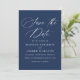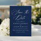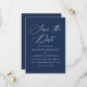 Teilen Sie Ihre spannenden Neuigkeiten mit unserer eleganten Hochzeit speichern Sie die Terminkarten. Mit "Save the Date" in anmutiger weißer Kalligraphie vor einem reichen marinen Hintergrund schafft dieses Design einen zeitlosen und raffinierten Look. Paare können die Karte mit ihren Namen, ihrem Hochzeitstag, ihrem Standort und ihrer Hochzeitswebsite personalisieren, die alle in fett weißer Schrift für einen schlichten und kohärenten Stil dargestellt sind. Dieses klassische Design ist einfach und auffallend, um den Ton für ein unvergessliches Fest zu setzen.