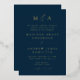 Feiern Sie Ihre Hochzeit mit dieser minimalistisch-modernen Einladung, die Ihre Monogramm-Initialen und Hochzeitsdetails in eleganter Goldfolienschrift zeigt. Schöne Kalligrafiefakzente fügen eine zeitlose, romantische Touch hinzu. Der reichhaltige Marinehintergrund ist vollständig anpassbar - wählen Sie eine Farbe, die perfekt zu Ihrer Hochzeitspalette passt. Ideal für Paare, die einen eleganten und raffinierten Stil schätzen, bietet diese Einladung eine schicke und personalisierte Art, Ihre Gäste einzuladen. Personalisieren Sie Ihre noch heute!