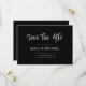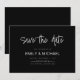 Eine schlichte, moderne, elegante Save the Date Hochzeitsankarte. Personalisieren Sie dieses minimalistische Schwarz-Weiß-Hochzeitsempfehlung-Design, um Ihre persönlichen Daten und Nachricht zu haben.