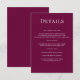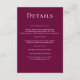 Moderne elegante Burgundy Wedding Details Enclosure Card mit weißem Script. Personalisieren Sie es mit Ihren Daten. Anzeigen passender Produkte aus dieser Sammlung.