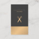 Moderne Visitenkartenvorlage mit dunkelgrau und Imitat Kupferstreifen Hintergrund und Schere Muster. Einfaches und elegantes Design. Perfekt für Friseur-, Schönheitssalon- oder Modefirmen.