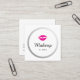 Elegante, anpassbare Visitenkartenvorlage mit IMITATEN silberner Kreis und rosa Lippen Ikone. Modernes Design, perfekt für Schönheitssalon, Makeup Künstler.