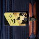 Ein schönes Reisedesign, personalisiert mit eigenem Namen und Initialen... Grafik eines schwarzen Weltplans und Flugzeugs.
