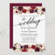 Moderne Elegante Kalligrafie Burgund Blumenhochzei Einladung