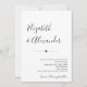 Elegante zeitlose Charme Skript Schwarz-Weiß Hochzeitseinladungskarten. Freuen Sie sich auf ein elegantes Design aus schwarzer Typografie, das mit einem hübschen, schicken Kalligraphieskript-Schriftart und einem handgezeichnet Herzakzent der Liebe geschmückt ist. Personalisieren Sie die Einladung mit einfachem und elegantem, individuellem Text, inklusive der Namen der Paare und allen wichtigen Details der Hochzeitsfeier. Freuen Sie sich auf eine warme und einladende Atmosphäre, in der Sie die Freuden Ihres besonderen Tages erleben können. Bestellen Sie jetzt und machen Sie Ihre Hochzeitsfeier wirklich unvergesslich!