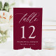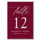 Moderne elegante Kalligraphie Burgundy Wedding Tischnummer